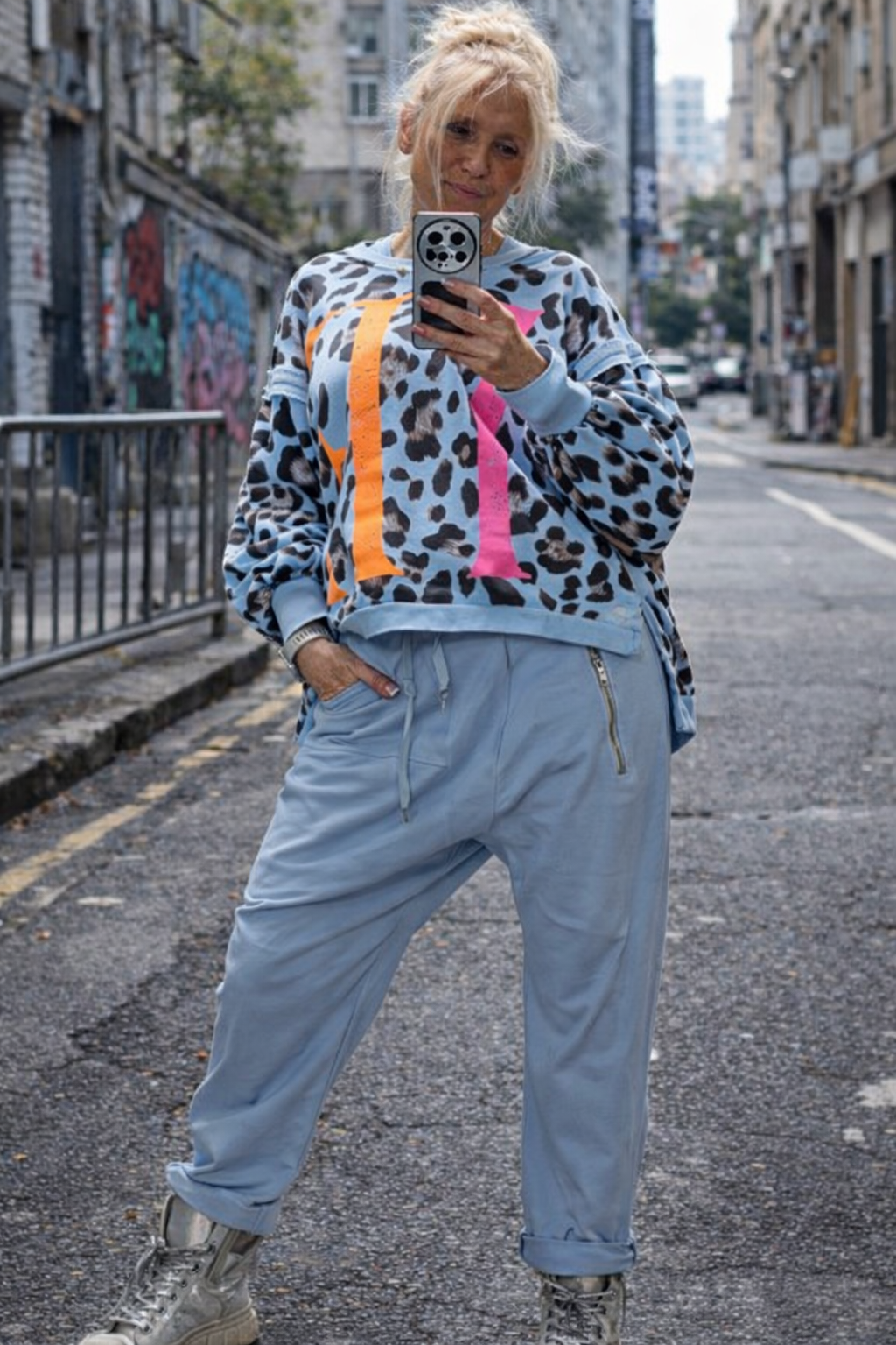Baggy-Hose mit Ketten- & Print-Details